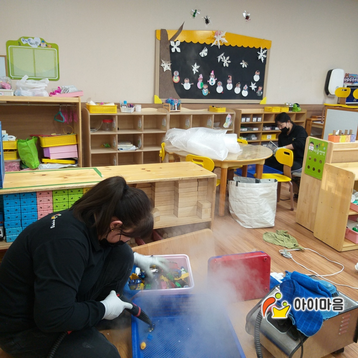 송북초병설유치원 책걸상, 교구장, 교구재를 스팀세척살균소독 하였습니다.