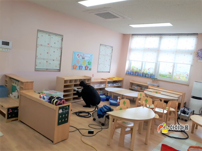 효덕초병설유치원 책걸상 및 교구장, 교구재를 스팀세척살균소독 하였습니다.