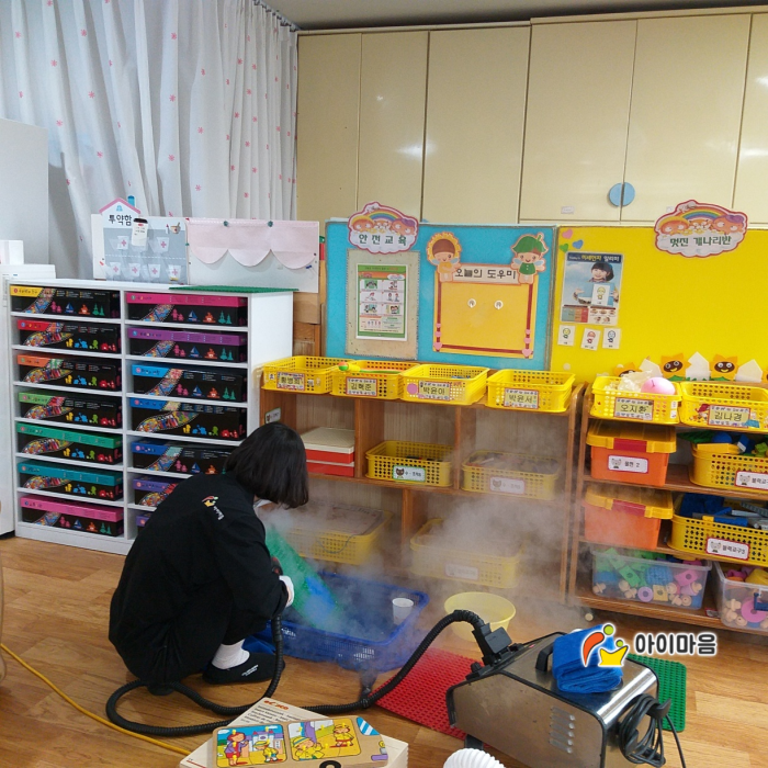 평택계성초병설유치원 책걸상, 교구장, 교구재를 스팀세척살균소독 하였습니다.