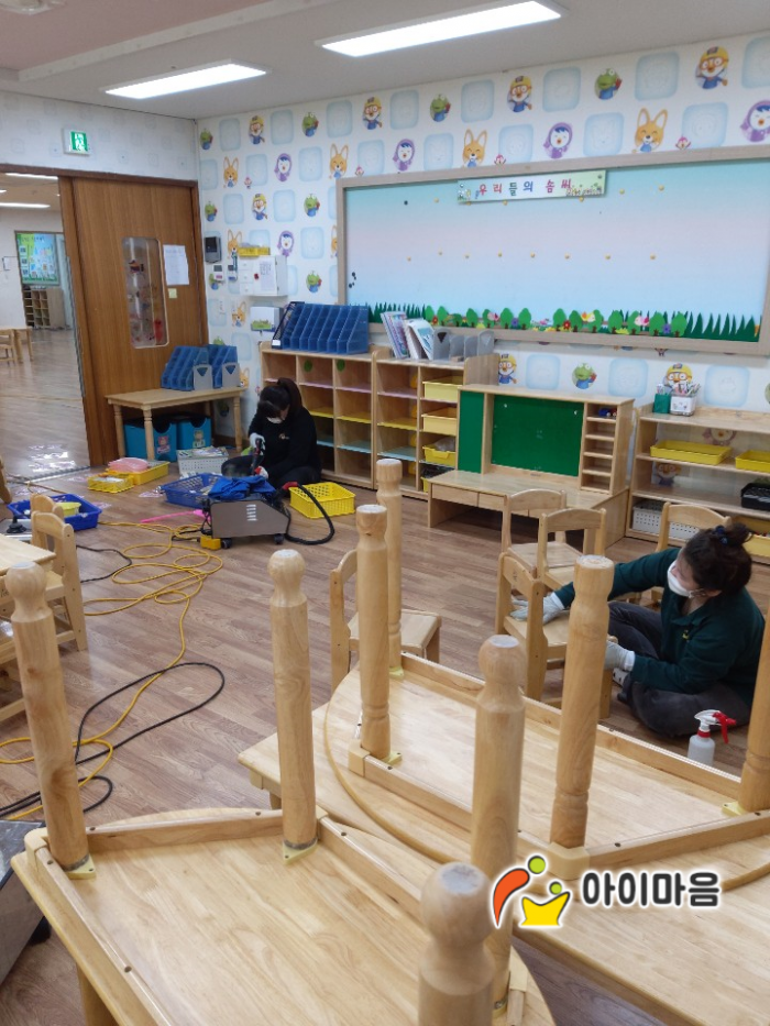 수원가온초병설유치원 책걸상, 고구장, 교구재를 스팀세척살균소독 하였습니다.