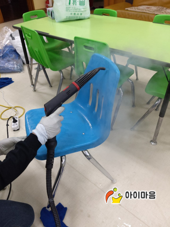 오후엔 평택 송화초돌봄 4개실 교구재등을 스팀세척살균소독 하였습니다.