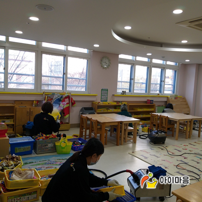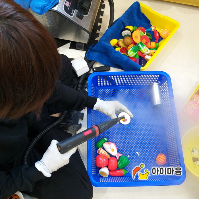 오후엔 평택 반지초병설유치원 교구재를 스팀세척살균소독 하였습니다.