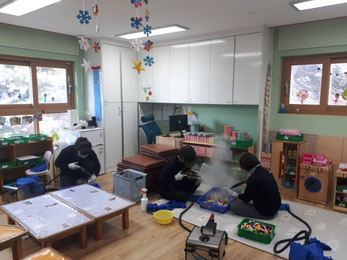 책걸상, 교구장, 교구재 등을 스팀세척살균소독 하였습니다.