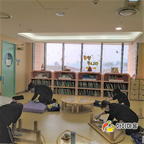 책걸상 및 교구재 유희실 매트 등을 스팀세척살균소독 하였습니다.
