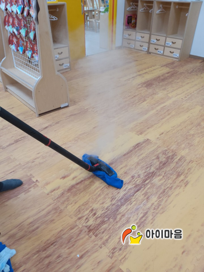 편백나무칩 놀이터 등을 스팀세척살균소독 하였습니다.