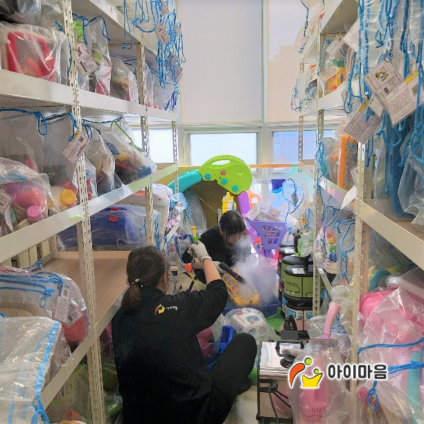 장난감과 놀이시설을 스팀세척살균소독 하였습니다.