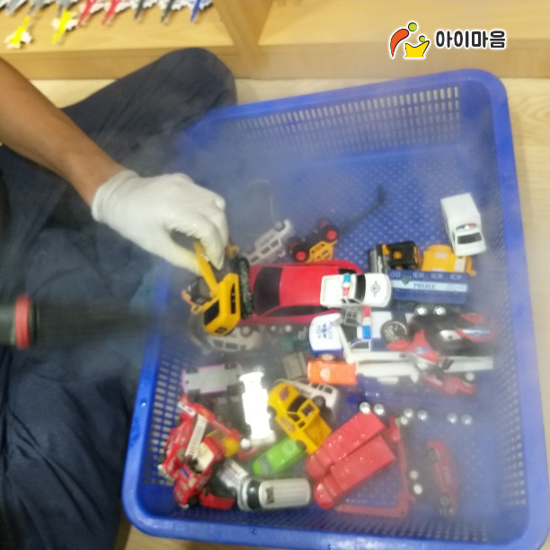 교구재들과 모래놀이등을 스팀세척살균소독과