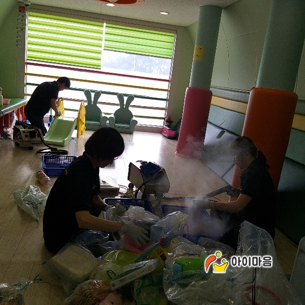오전점, 내손1동점, 부곡점 놀잇감과 시설물을 스팀세척살균소독 하였습니다.