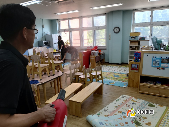 아침저녁으론 선들한 기운이 느껴지네요 환절기 건강 잘 챙기시기 바랍니다. 아이마음은 매홀초병설유치원 책걸상, 교구장, 교구재를 스팀세척살균소독하고 바닥도 고온스팀소독과 천연피톤치드분무도 서비스 해드렸습니다. 대원초에서 뵈었던 선생님께서 매홀초로 전근을 오셔서 다시 아이마음을 불러주셨습니다. 이렇게 다른학교에서 뵐때면 더 반갑고 감사한 마음입니다~^^