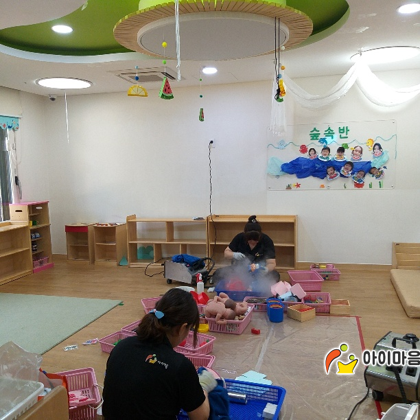 한국타이어 동그라미어린이집 교구재와 카펫을 스팀세척살균소독 하였습니다.