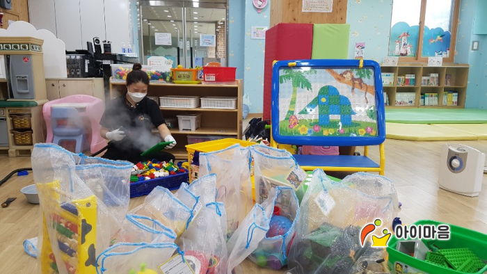 놀잇감과 시설물 전체를 스팀세척살균소독 하였습니다.