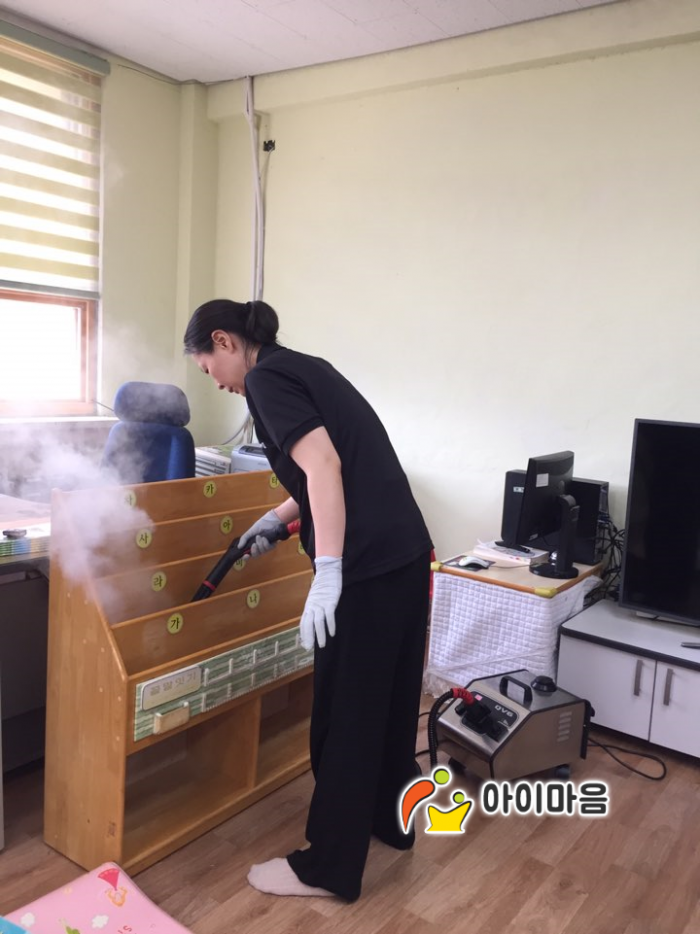 오전엔 그림같이 예쁜 화수초병설유치원 교실전체를 스팀세척살균소독 하였습니다.