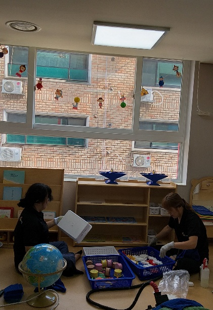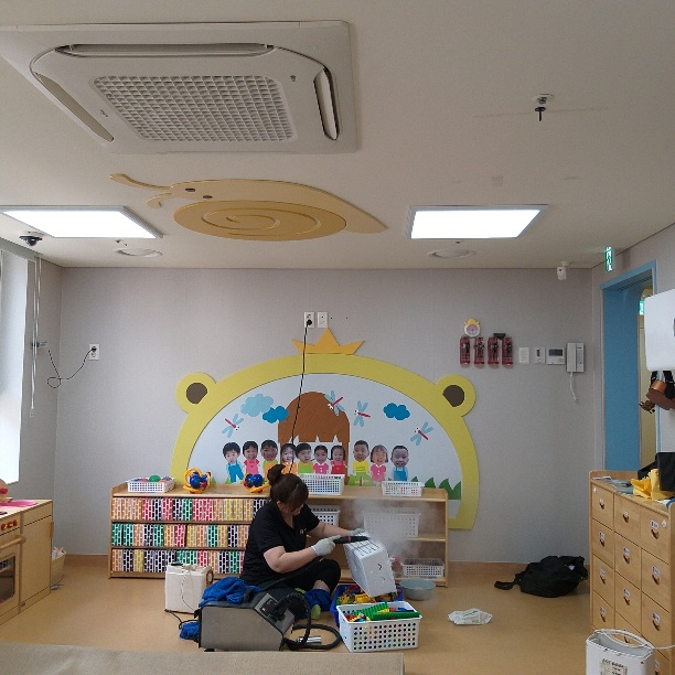 오후엔 gs리테일 푸르니 어린이집 원 전체를 스팀세척살균소독 하였습니다.