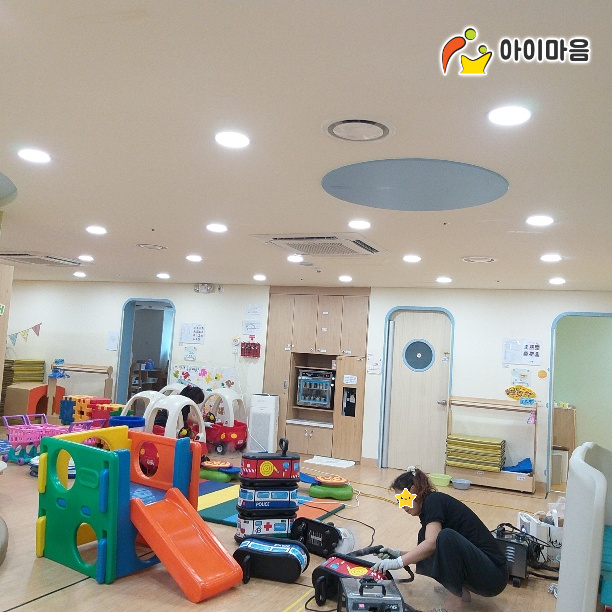 메리츠 어린이집 책걸상 교구장 교구재등을 스팀세척살균소독 하였습니다.