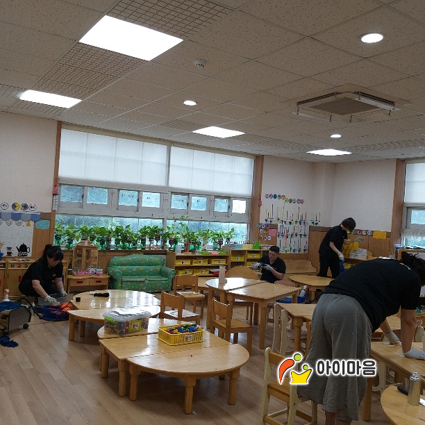 깊은샘유치원 책걸상 교구장 교구재 등을 스팀세척살균소독 하였습니다.