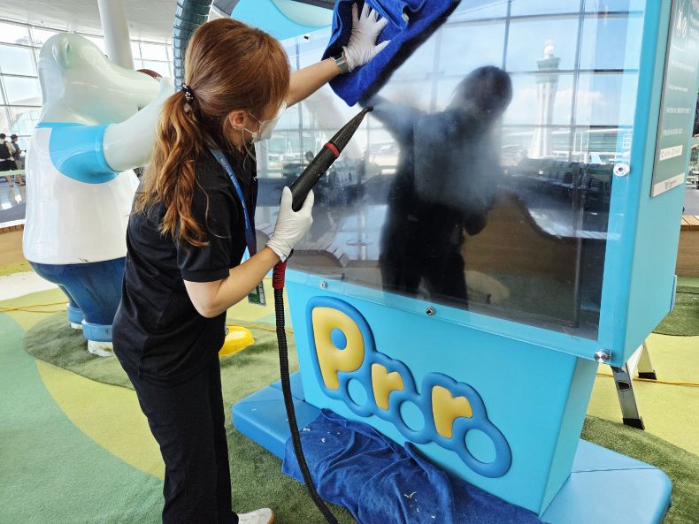 시설물과 카펫을 스팀세척살균소독, 청소를 하였습니다.