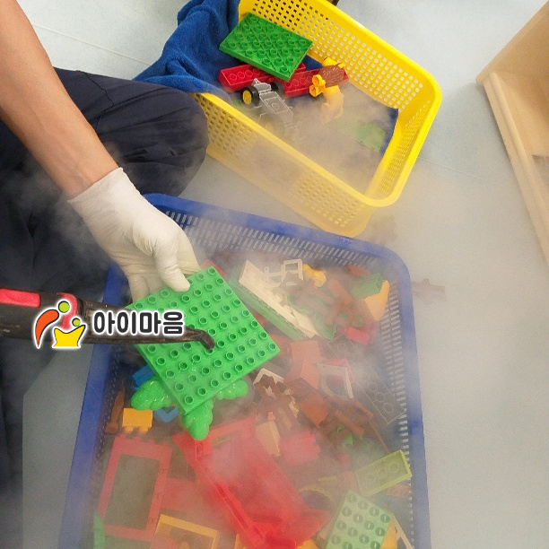 오후엔 상암동 직장어린이집 교구재를 스팀세척살균소독 하였습니다.