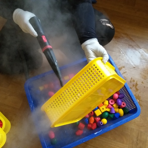 송신초병설유치원 교구재를 스팀세척살균소독 하였습니다.
