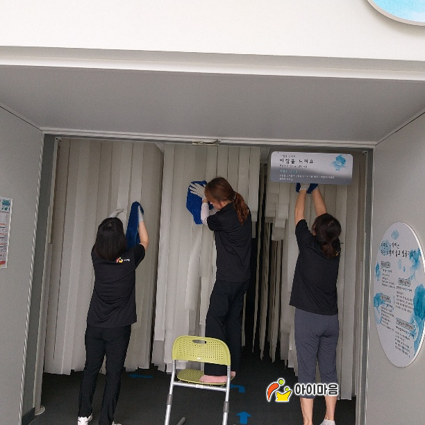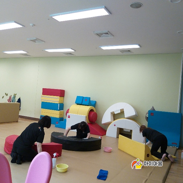 몸으로 뒹굴고 노는 놀이 매트를 깨끗하게 세척하고