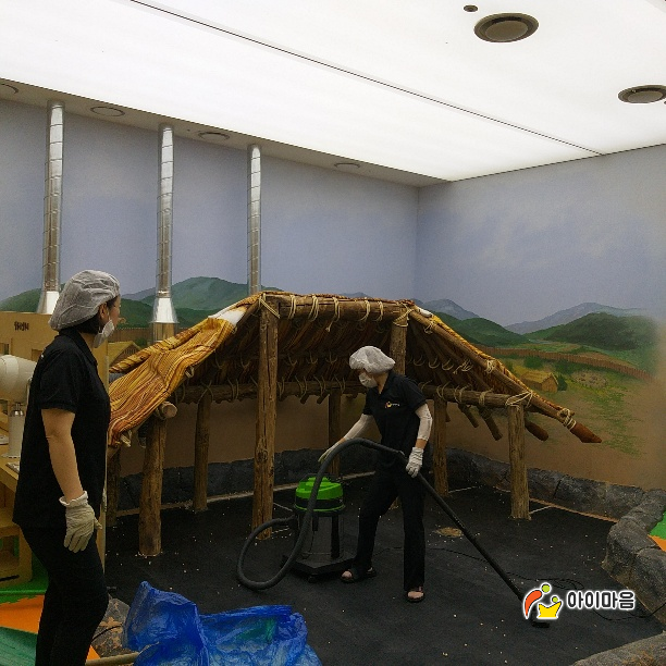 편백나무칩을 걷어낸 후 깨끗하게 청소하는 작업사진입니다.