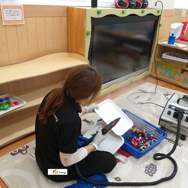 아이러브맘카페 놀잇감을 스팀세척살균소독 하였습니다.