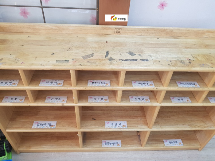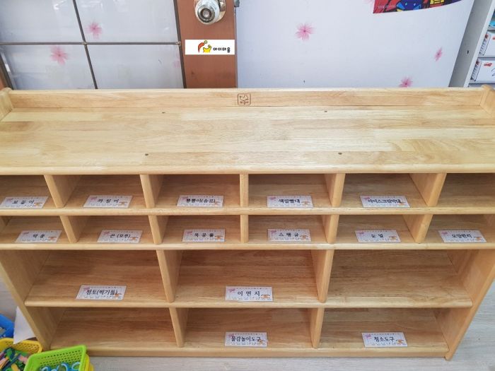 오늘은 놀잇감, 교구재가 담긴 소쿠리, 책상, 의자, 교구장등을