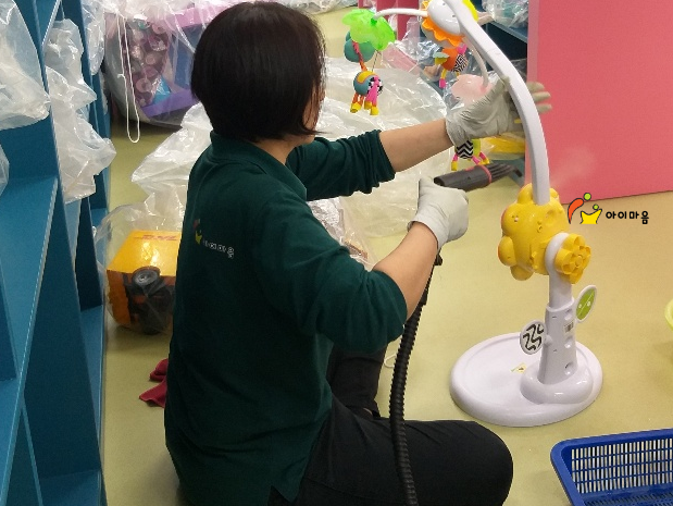 오후엔 동탄어울림사회복지관 장난감을 스팀세척살균소독 하였습니다.