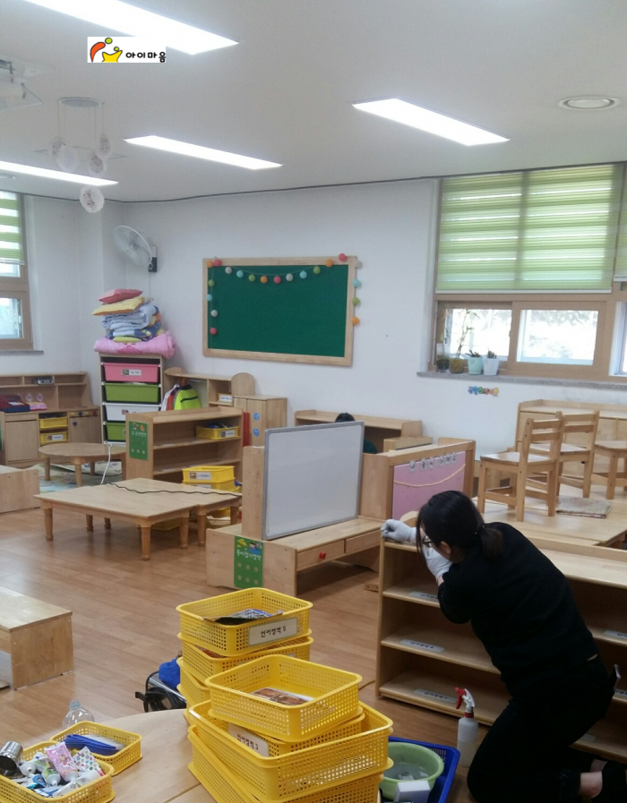 오늘도 아이마음1팀은 만정초등 병설유치원 교구재등을 스팀세척살균소독 하였습니다.