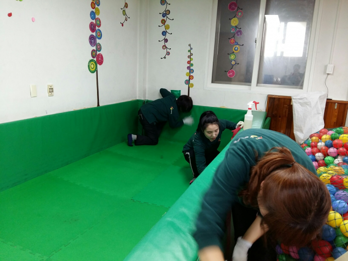볼풀공을 걷어낸후 볼풀장을 깨끗하게 정리하는 과정입니다.