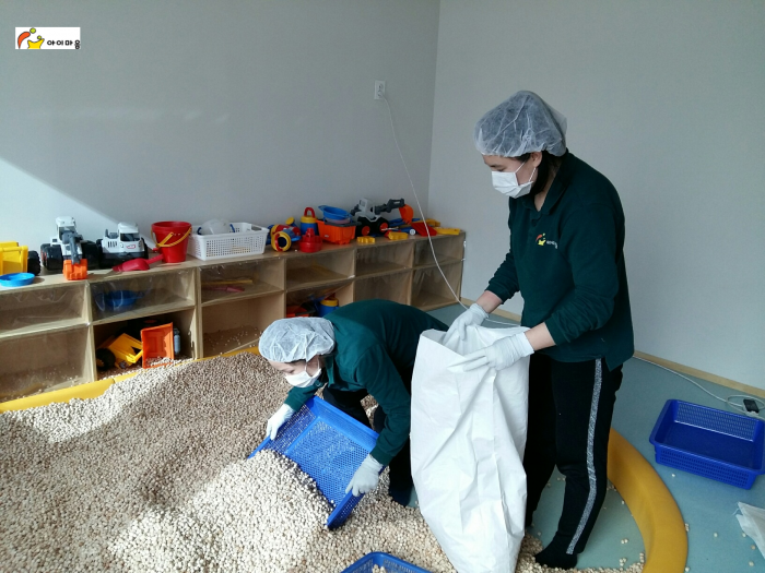 편백나무칩은 볼풀장만큼이나 관리하기 힘든 놀이터입니다.