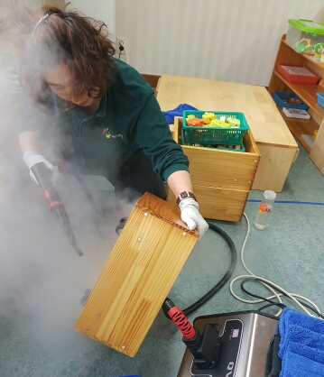 지저분했던 의자가 노랗게 새의자처럼 변신을 한것을 보시고