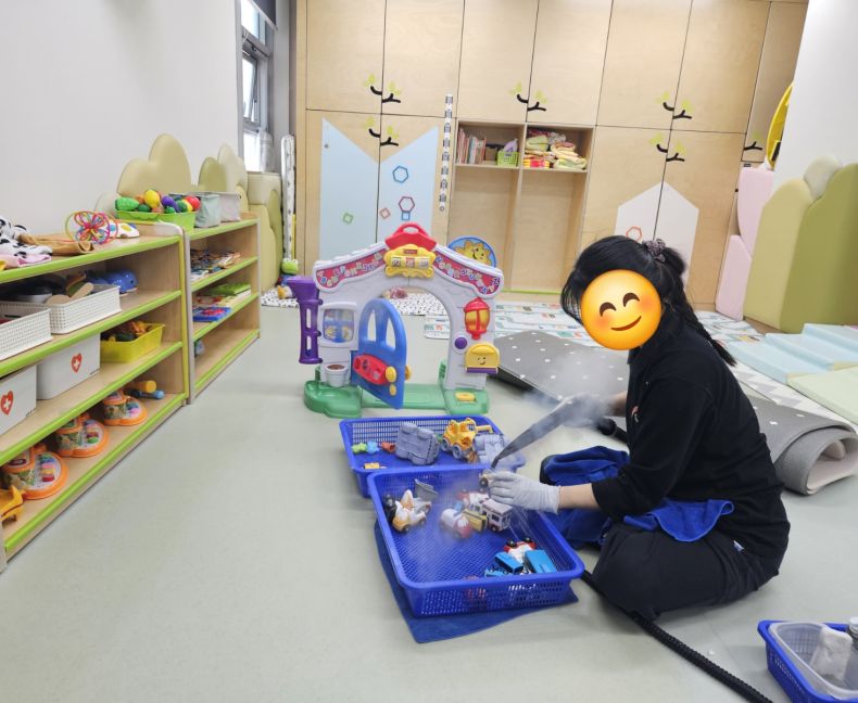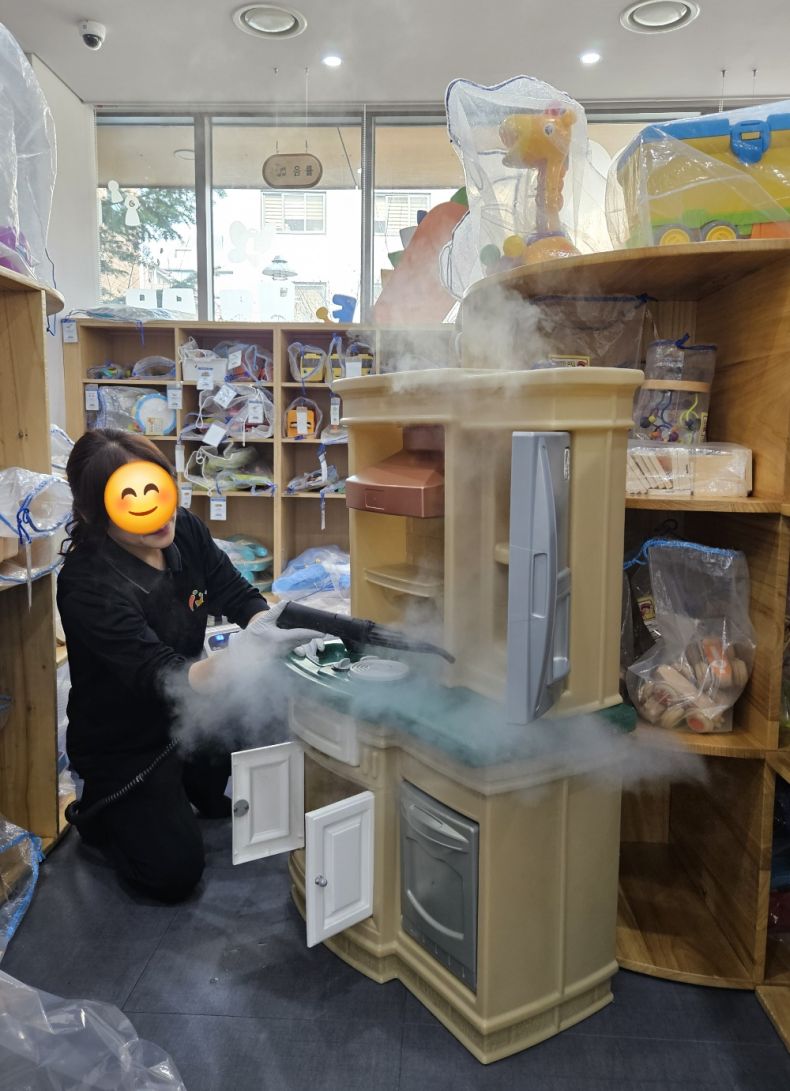 시간제보육실 장난감을 스팀세척살균소독 하였습니다.