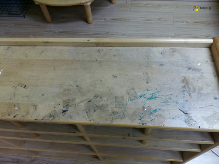 스티커와 오랜기간동안 손때가 묻어 상당히 지저분한 미술장입니다.