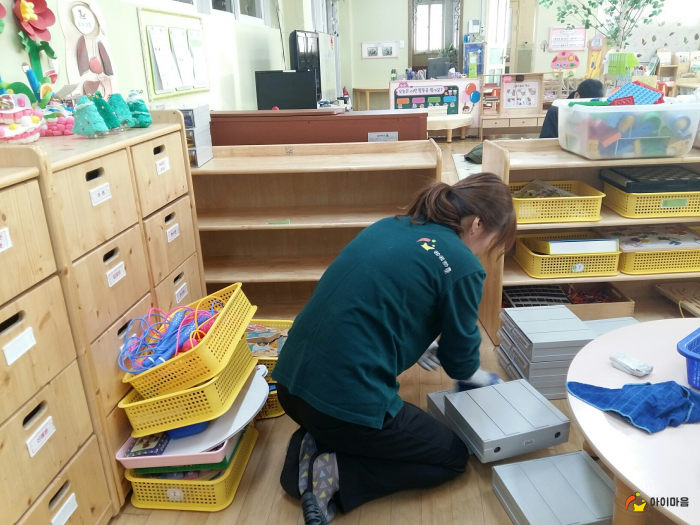 교구장과 TV장등을 옮기며 뒤에 떨어져 있는 교구재와