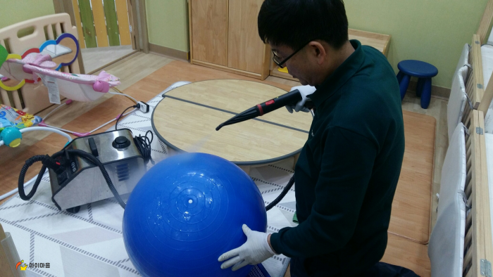 오산아이맘카페 시간제 보육실 스팀세척살균소독하였습니다.