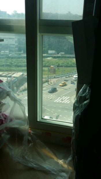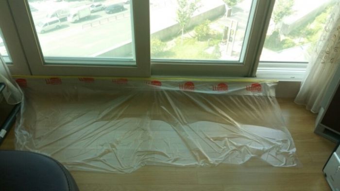 시공전 마스킹을 해놓은 상태입니다. 시공에 있어 주변의 가구나 커텐등에 오염이 되지 않게끔 해야겠죠.