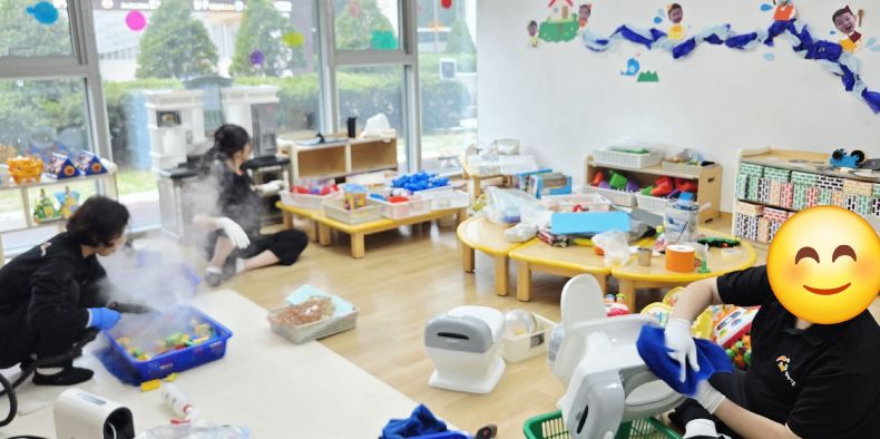 농심어린이집 장난감을 스팀세척살균소독 하였습니다.