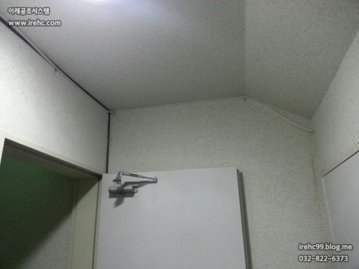 배수처리는 천장으로 지나가는 다른 배관을 이용해 호스를 연결하고 문 앞의 배수로로 처리하였습니다.