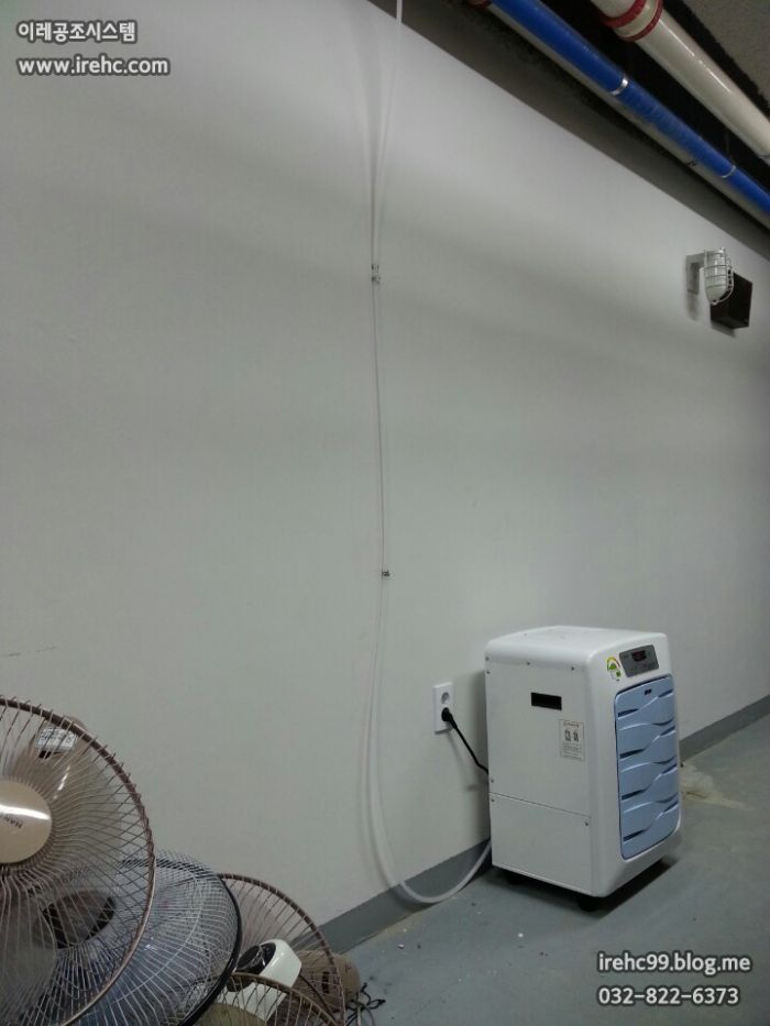 배수처리에 좀 시간이 걸렸네요. 천정모서리를 한바퀴 돌아 바로 옆의 집수정으로 호스를 연결 하였습니다.