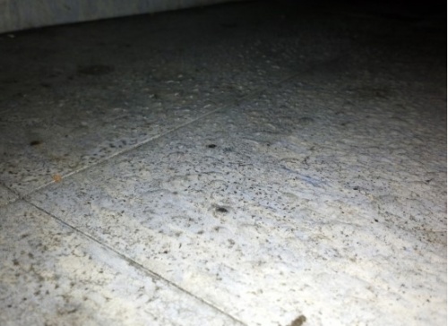 습기로 인해 시청각교육실 바닥에 시커멓게 곰팡이가 번식했습니다.