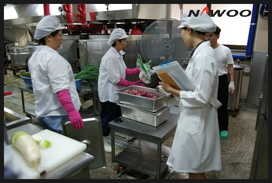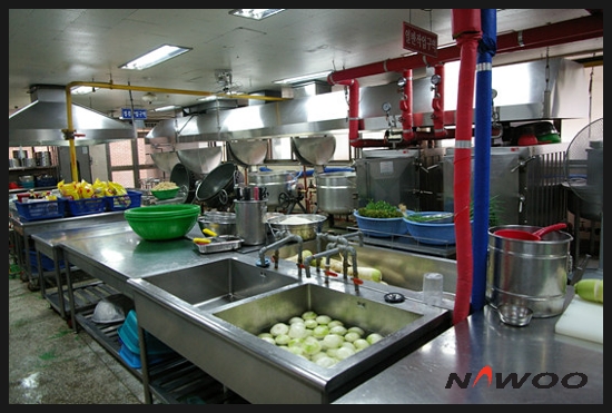 학교 급식실, 청결해 보입니다. 그러나 습기가 많이 내포되어 있는상태로 방치해두면