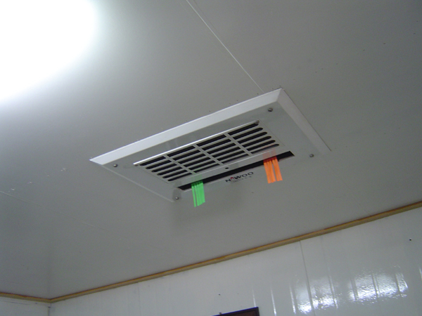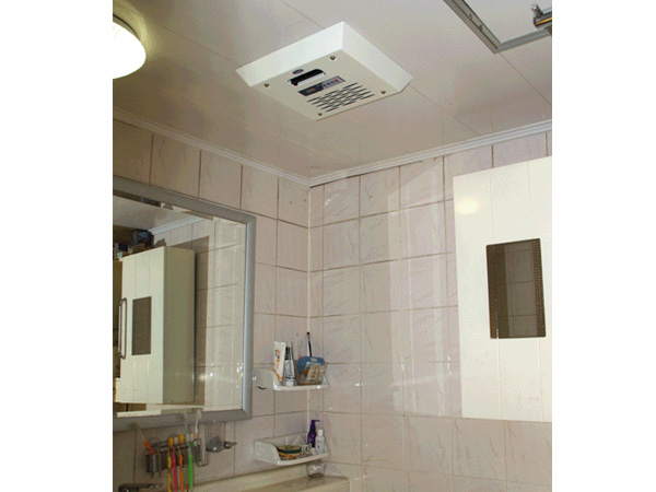 천장형 전기온풍기"는 공간을 차지하지 않으며, 화장실 동파방지용이나 좁고 긴 복도 같이 협소한 장소의 난방에 적합합니다.