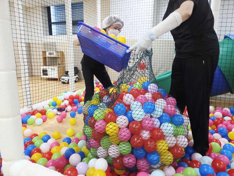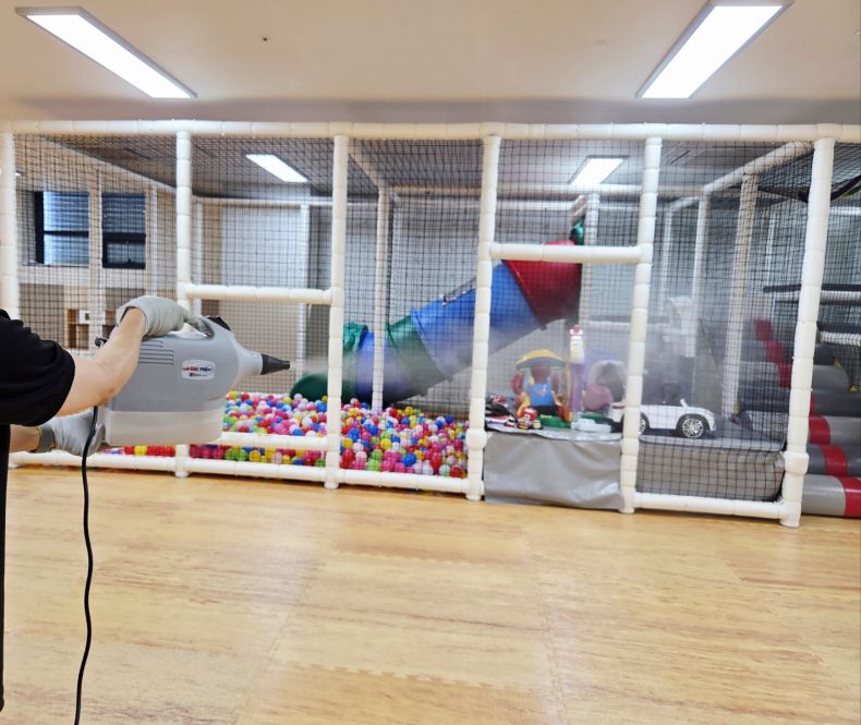 주왕교회 실내놀이터 시서물을 청소, 스팀세척살균소독