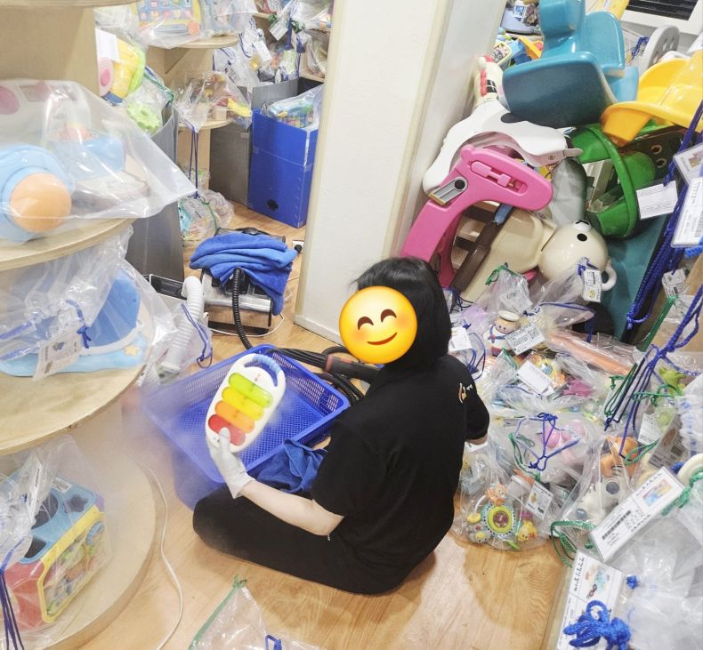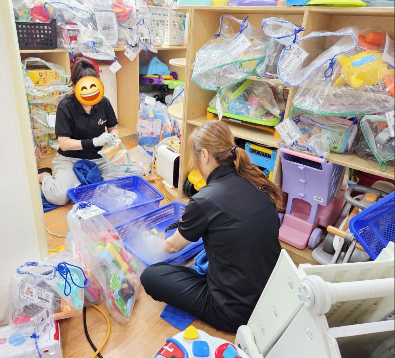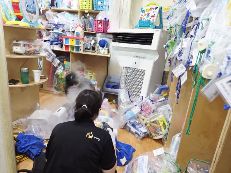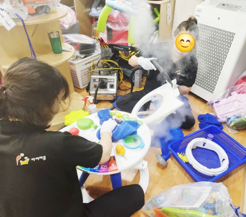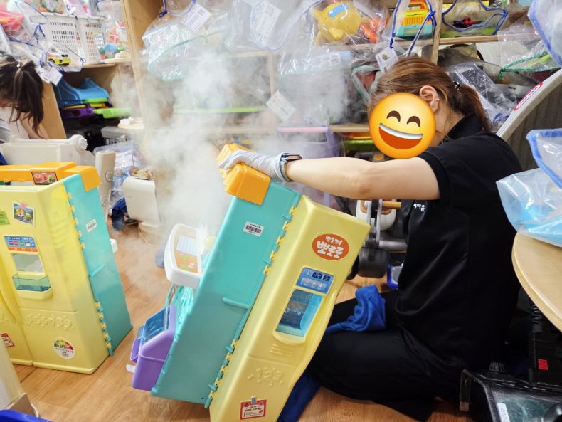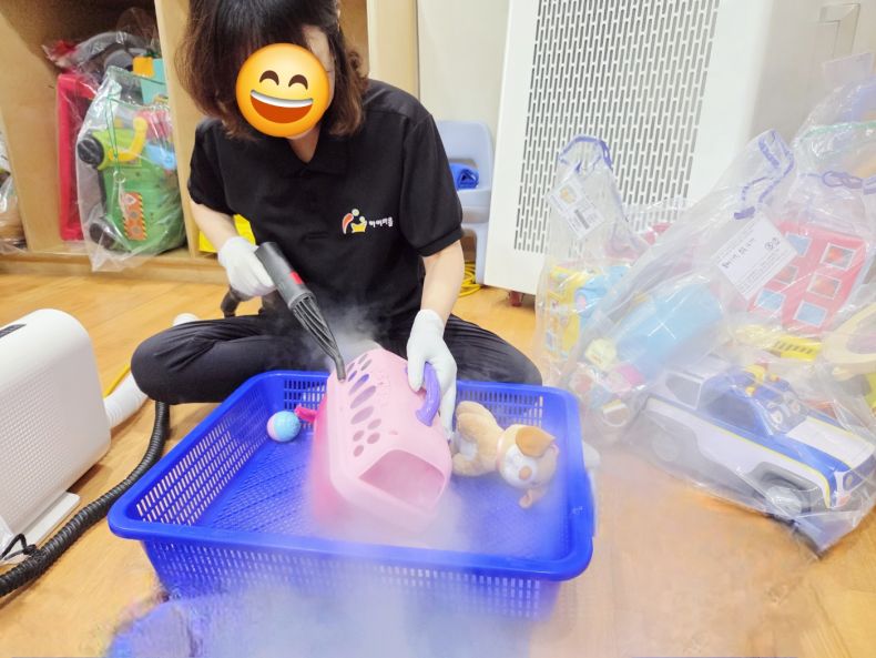 장난감을 스팀세척살균소독 하였습니다.