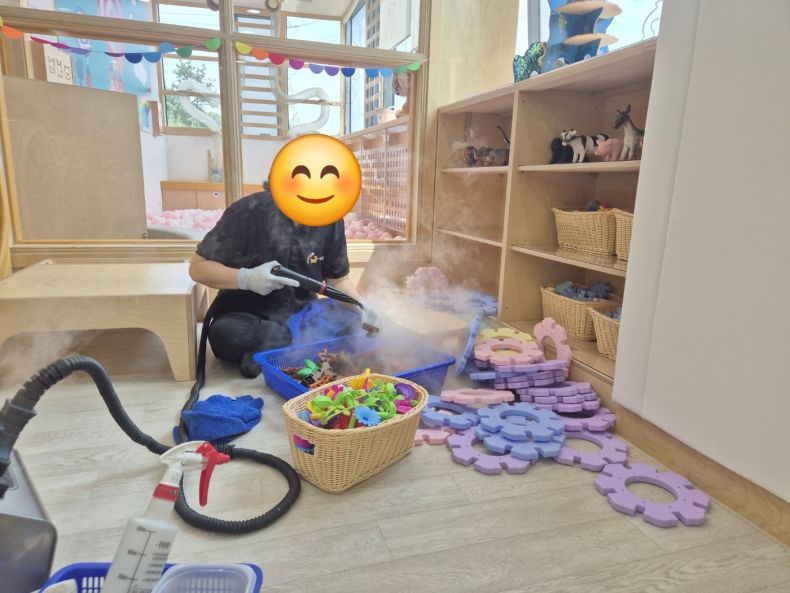 시설물 전체를 스팀세척살균소독 하였습니다.