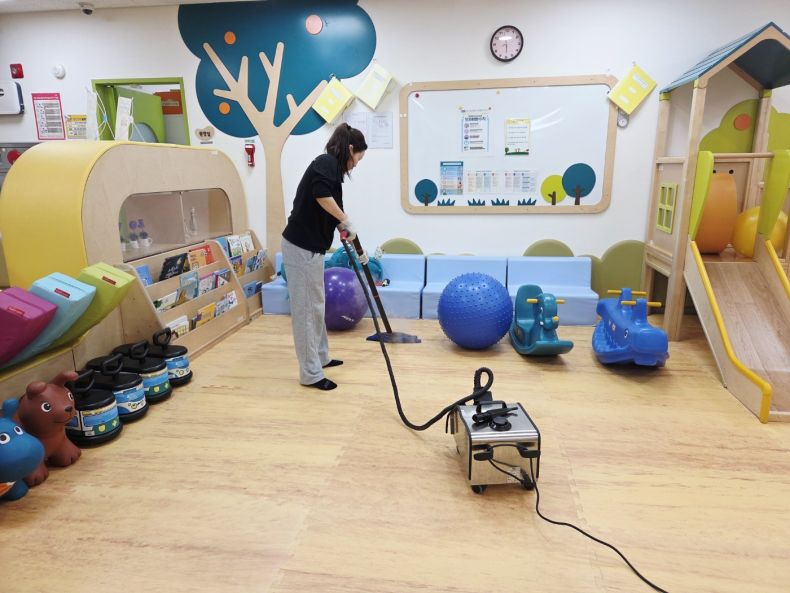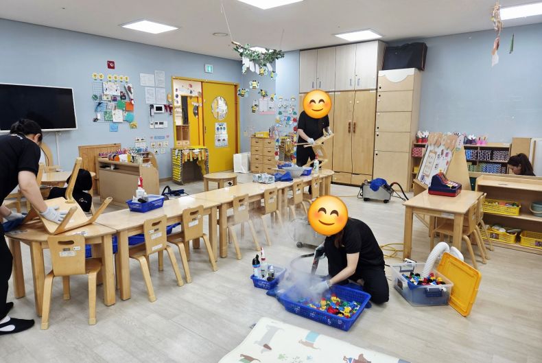 원 시설물 전체을 스팀세척살균소독 하였습니다.