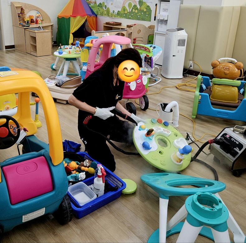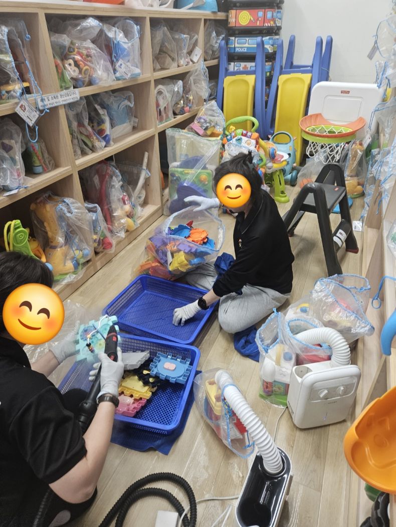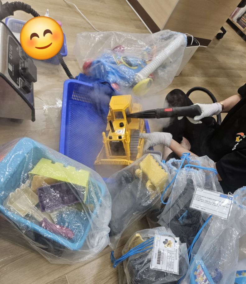 장난감을 스팀세척살균소독 하였습니다.