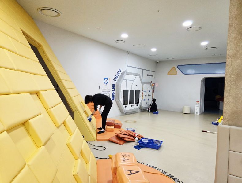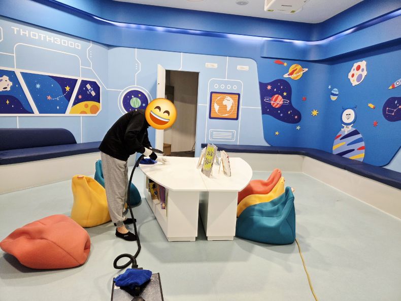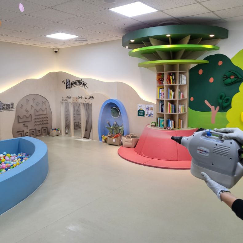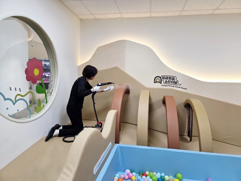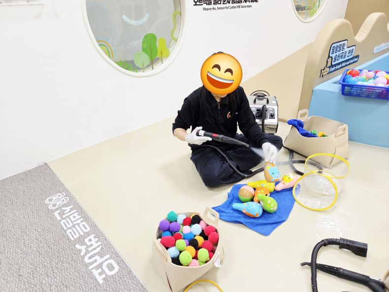 장난감과 체험시설을 스팀세척살균소독 하였습니다.