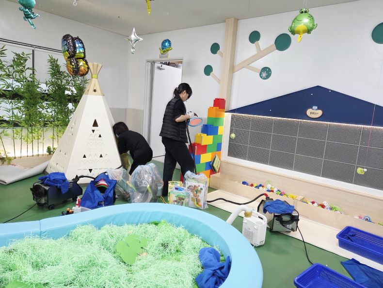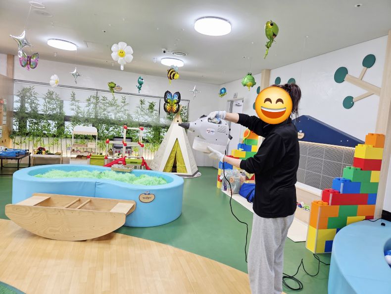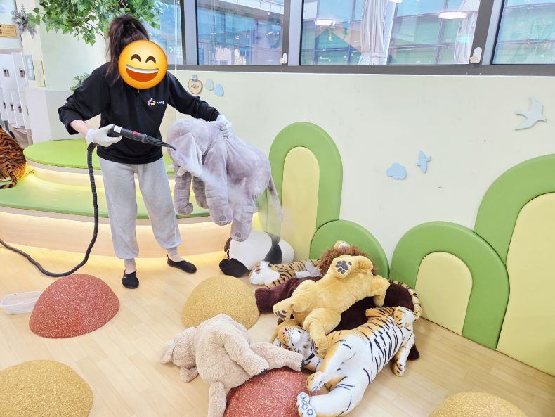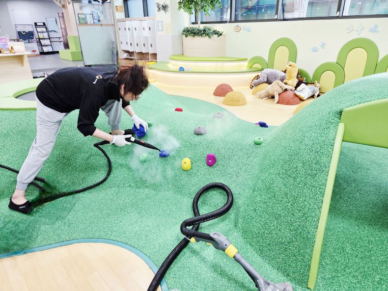 장난감과 시설물을 스팀세척살균소독 하였습니다.