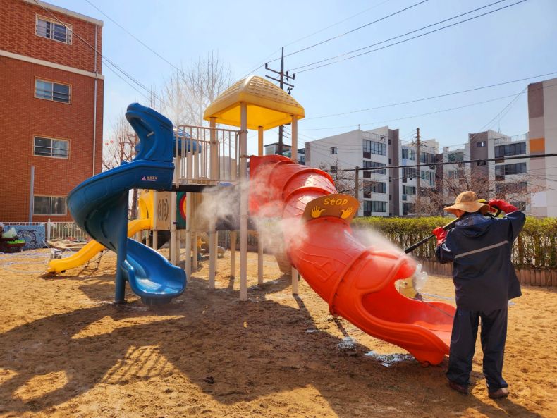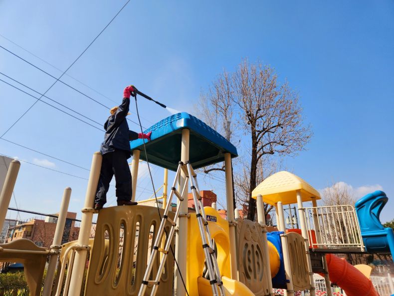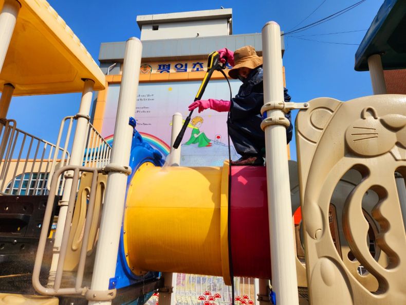 평일초병설유치원 바깥놀이터를 세척작업 하였습니다.